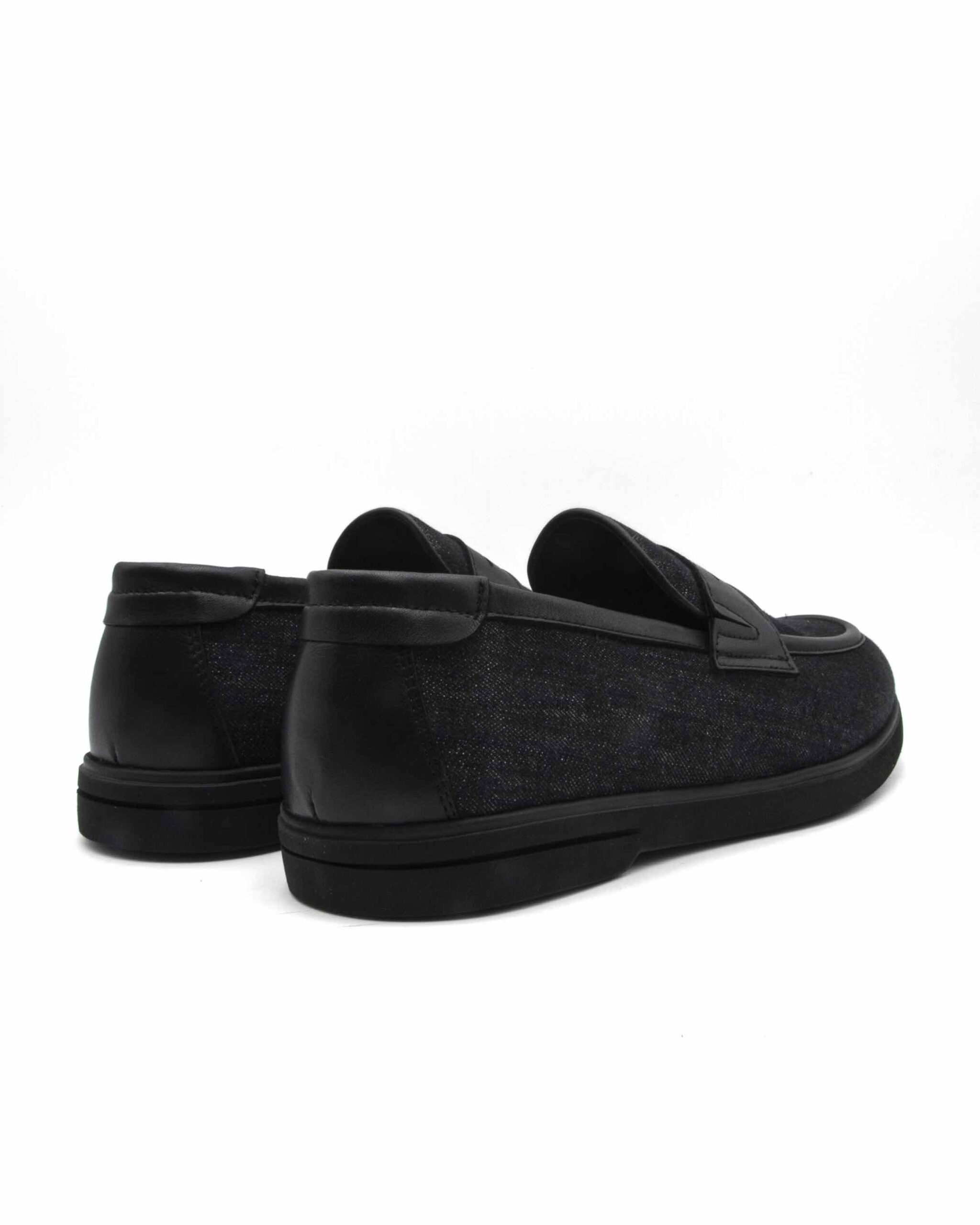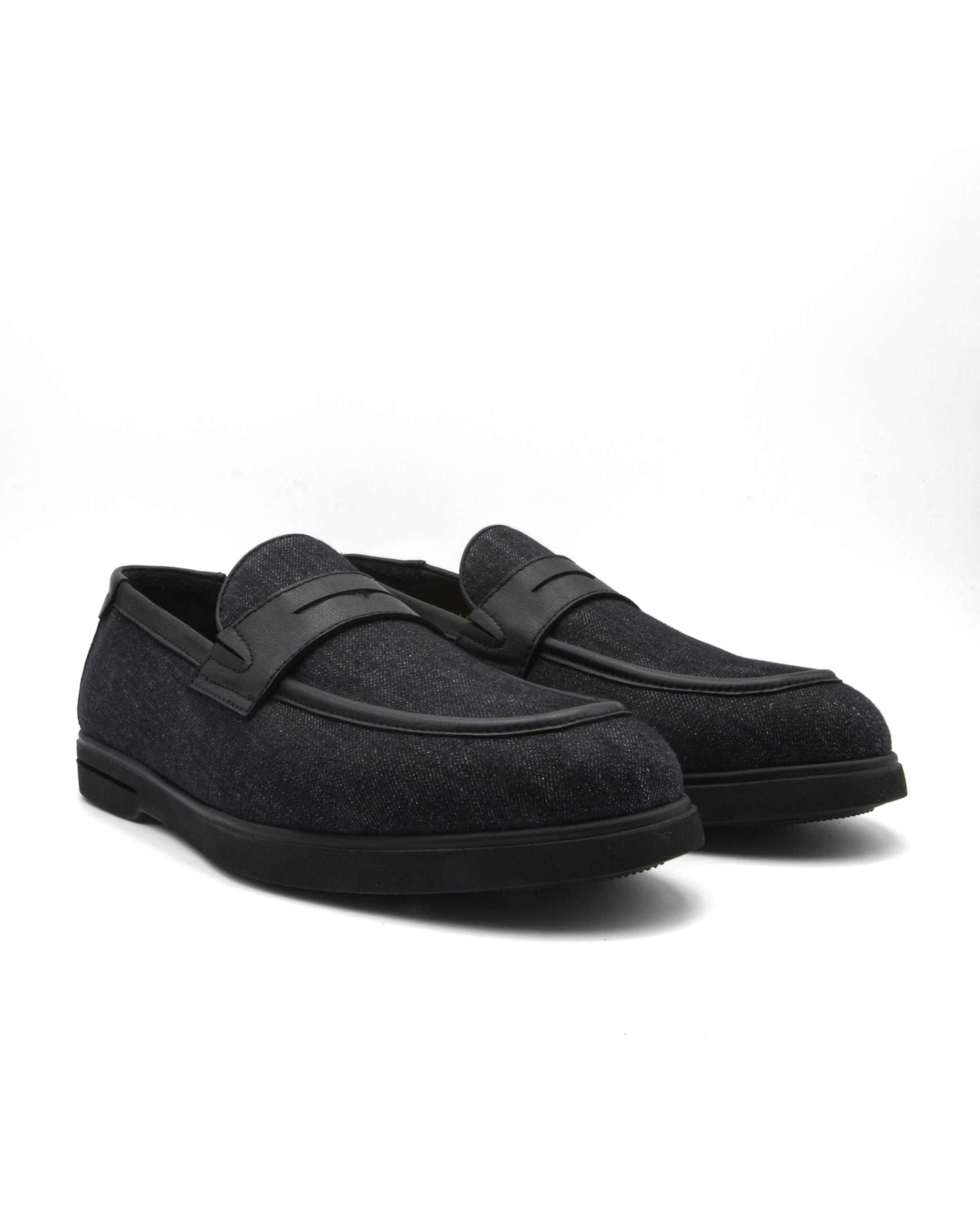 Experience ultimate comfort with the black soft loafers, is a must-have.Crafted from jeans textile, this quintessential summer-weather staple features elegant piping detail and a flexible extra light sole designed for effortless, all-day wear. These slip-on loafers are the perfect choice for refined casual styling.